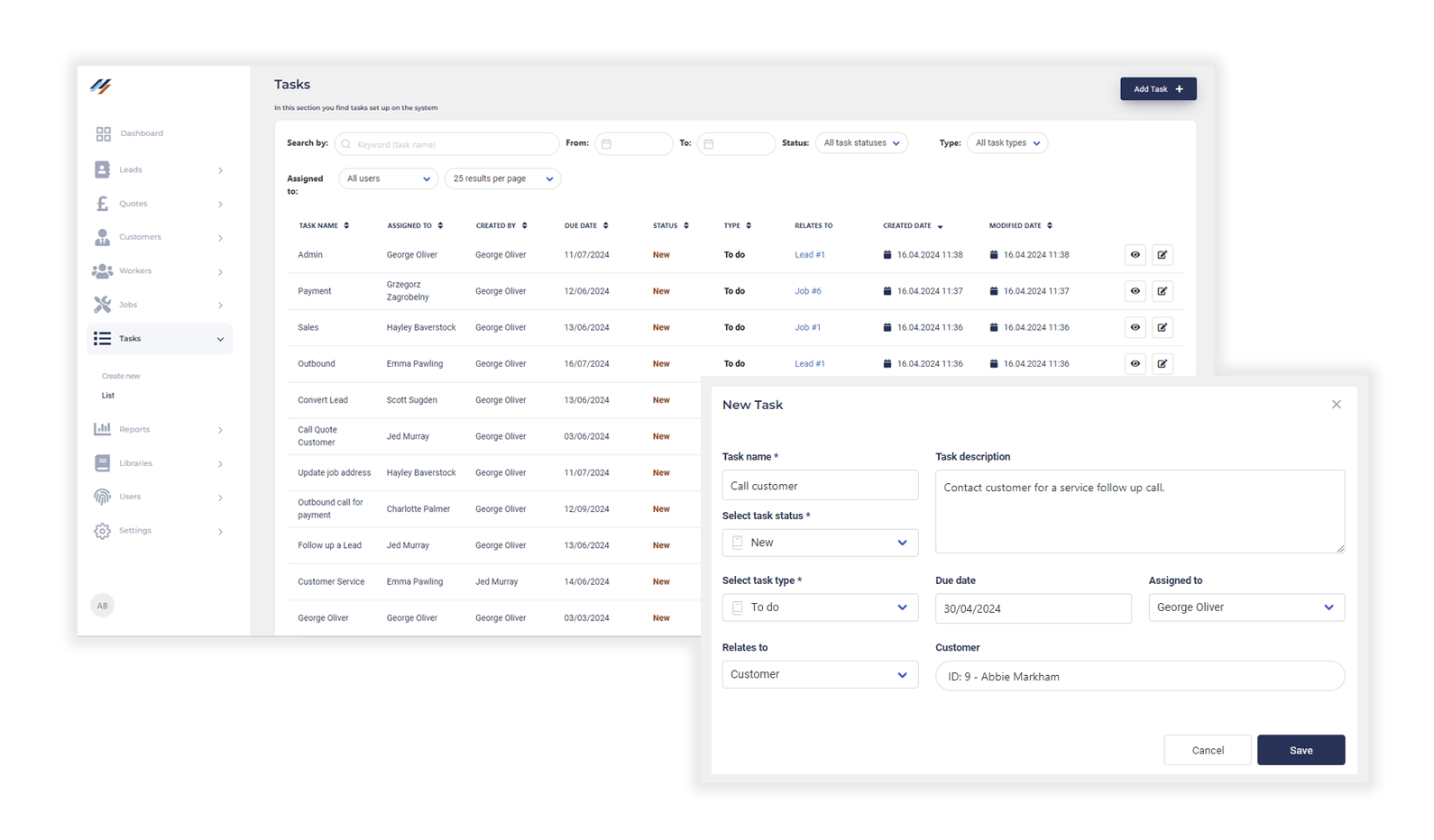 Our Tasks Module offers a comprehensive solution for efficient task management. Seamlessly create tasks and assign them to customers or specific jobs, ensuring that no detail goes unnoticed. With RemoteWorkr, you can easily set deadlines and track progress, ensuring that your team stays on top of every aspect. Deliver exceptional results and exceed customer expectations!