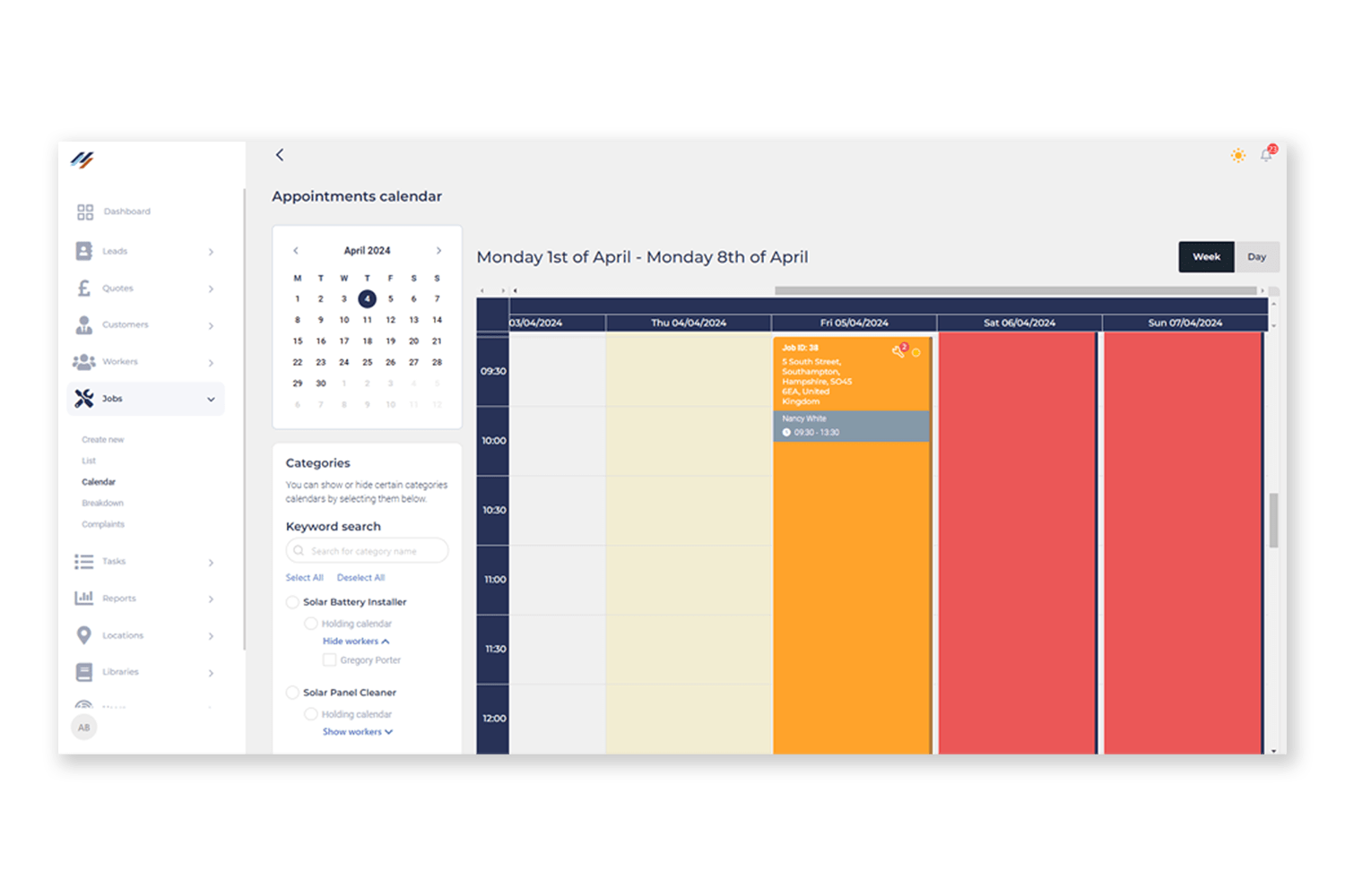 With RemoteWorkr, managing your team's schedule has never been easier! Stay on top of your workforce's commitments and maximise productivity with the intuitive Worker Calendar functionality. Effortlessly navigate through your workforce by filtering by date, worker types or specific individuals, allowing you to quickly assess availability and view booked jobs at a glance.