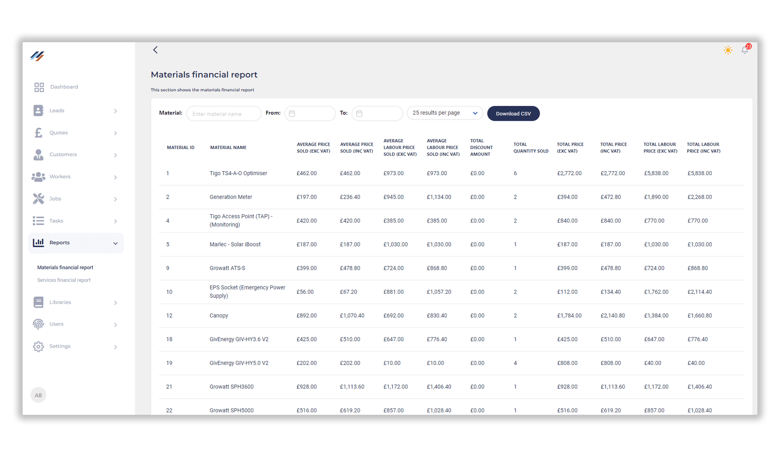 Our Reports Module provides a detailed account of the materials and services sold by your business, allowing you to track costs, monitor profitability, and make informed decisions. Whether it's assessing the performance of specific products or identifying trends in customer preferences, RemoteWorkr's reporting capabilities empower you to optimise your offerings and maximise your bottom line.