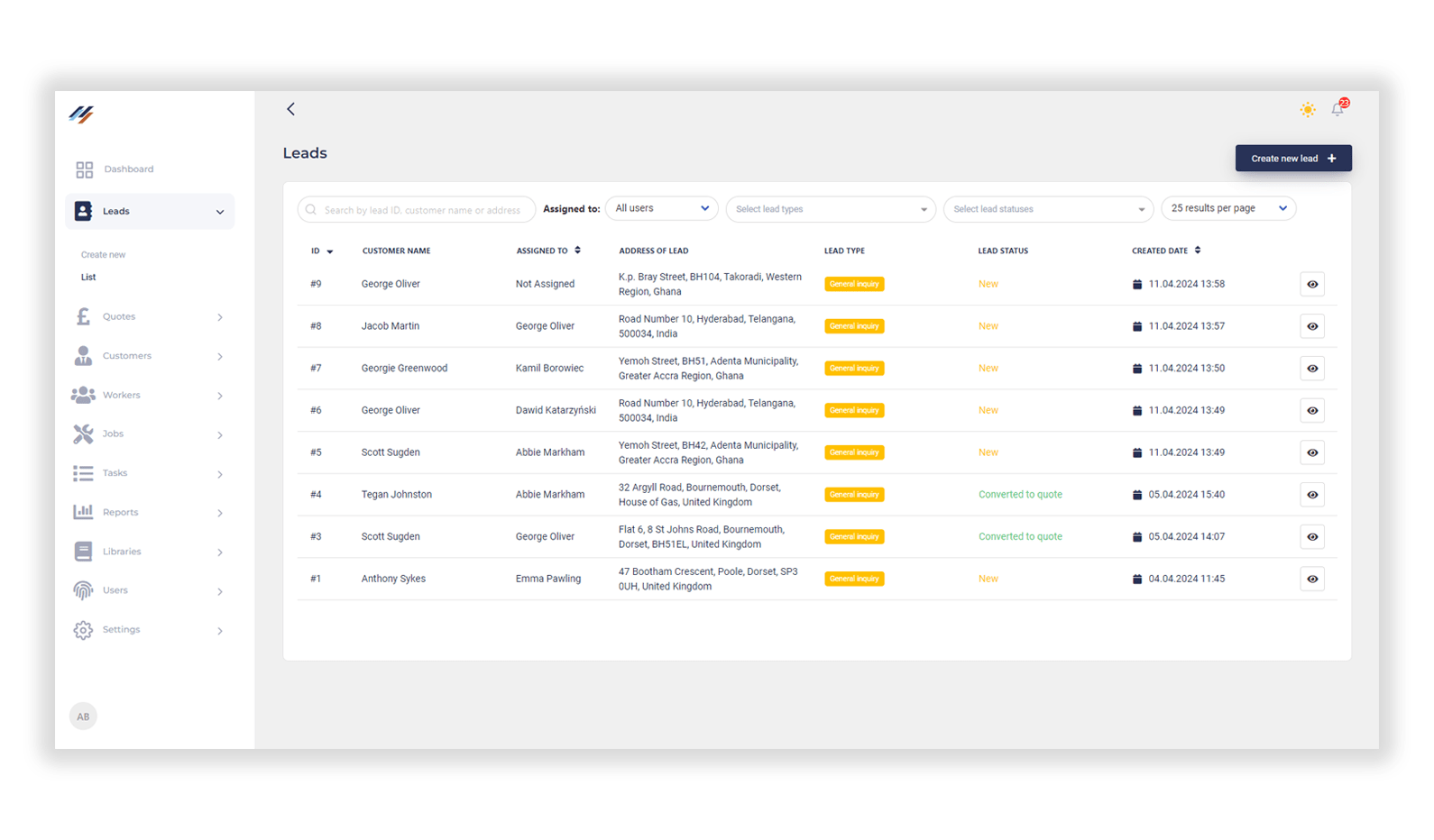 With the Lead and Quote Modules, streamlining your sales process is simple. Record leads, transform them into detailed quotes, and smoothly transition quotes into actual jobs. By streamlining the process from lead generation to job completion, these modules empower you to nurture potential opportunities and secure new business with ease. Say goodbye to manual data entry and disjointed workflows!